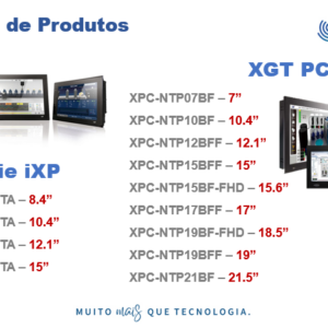 As interfaces homem-máquina (IHMs) são dispositivos e software para monitorar e operar instalações de automação usando gráficos projetados pelos usuários. Os painéis XGT desenvolvidos com a plataforma Windows CE proporcionam conveniência orientada ao usuário, expressões claras e realistas, transmissão e tratamento rápido de dados e software familiar aos usuários